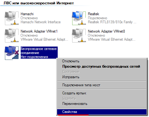 нажимаем правой кнопкой мыши по нужному подключению и нажимаем на Свойства.