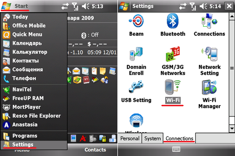 Настройка беспроводного соединения в Windows Mobile 6.1